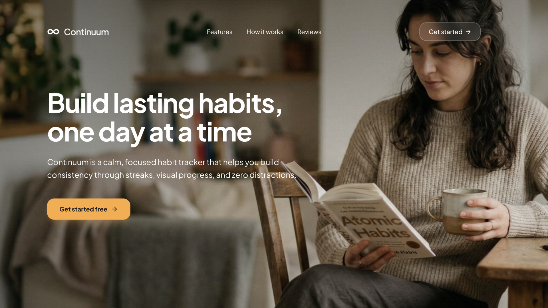 ContinuumA calm, distraction-free habit tracker with streak counters, calendar heatmaps, and motivational insights